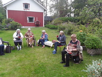 ![]() Kukkien vienti entisten puheenjohtajien haudoille juhlapäivänä 21.8.2016. Kuva Marttojen arkisto. |